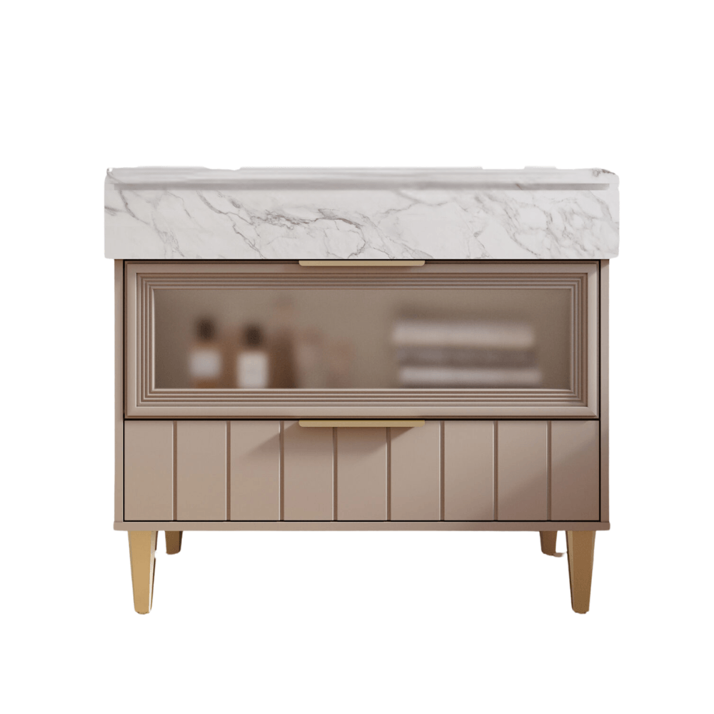 Produzido em 100% MDF, o móvel combina resistência, durabilidade e acabamento de alto padrão. Seu tampo marmorizado em MDF no estilo Calacata e a cuba de sobrepor em mármore sintético agregam requinte e modernidade ao ambiente.