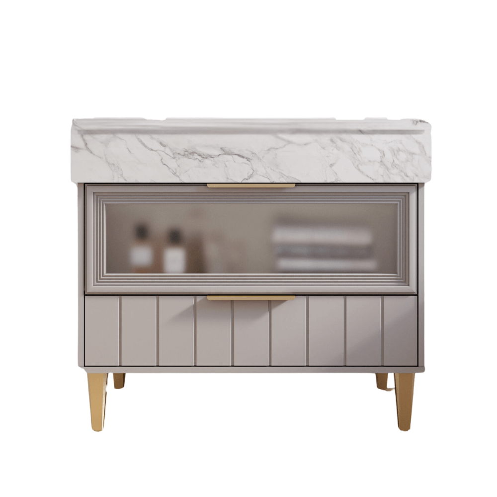 Produzido em 100% MDF, o móvel combina resistência, durabilidade e acabamento de alto padrão. Seu tampo marmorizado em MDF no estilo Calacata e a cuba de sobrepor em mármore sintético agregam requinte e modernidade ao ambiente.