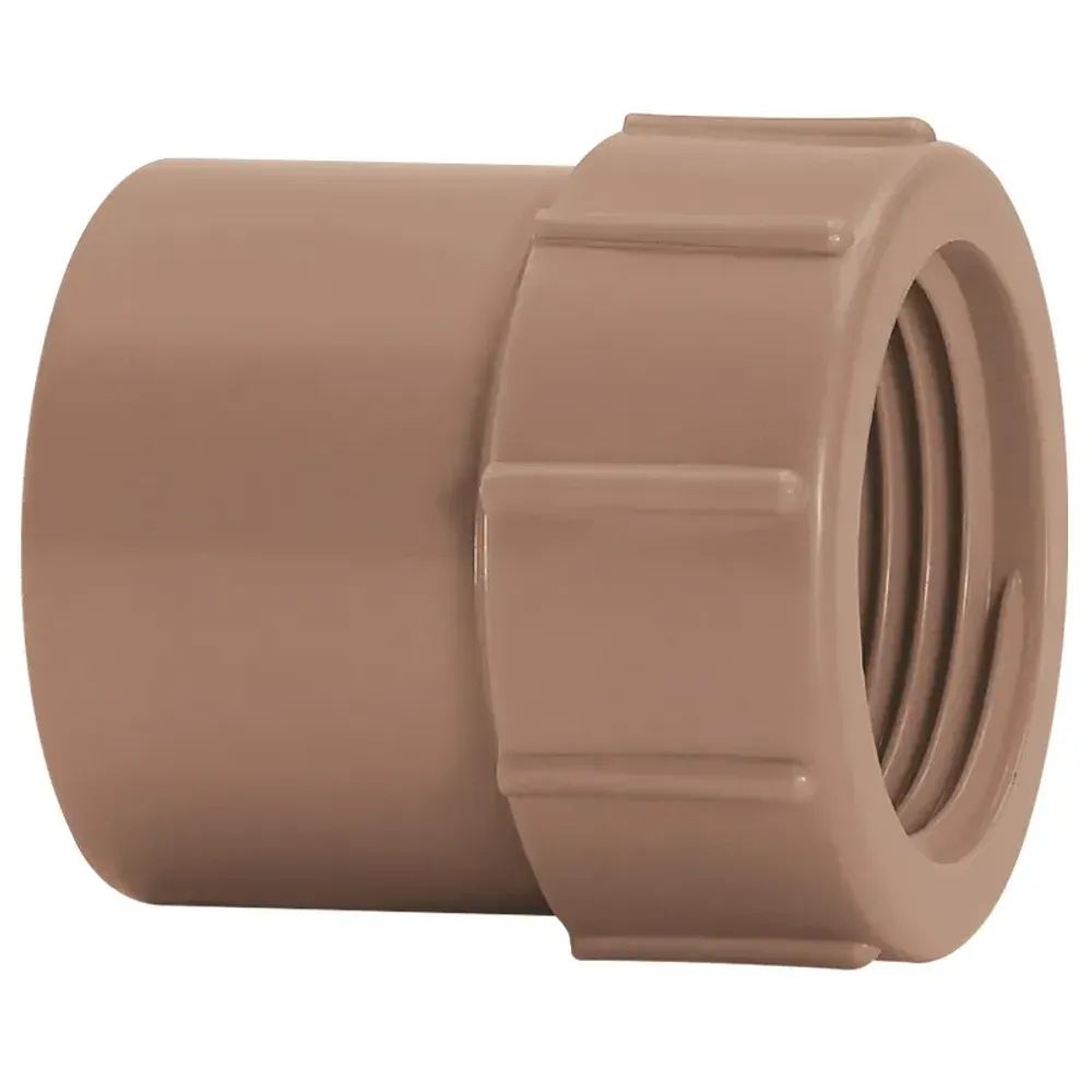 Luva Soldável e Roscável 20mmx1/2" Amanco. A Luva Soldável e Roscável 20mmx1/2" da Amanco é uma conexão de transição versátil, projetada para unir tubos de PVC soldáveis com conexões roscáveis. Ela permite a transição de um tubo de água fria de 20mm para uma rosca de 1/2 polegada, possibilitando a conexão de torneiras, registros e outros acessórios.. Fabricada em PVC de alta qualidade na cor marrom, a luva garante resistência à corrosão e durabilidade. A conexão com o tubo de PVC é feita por junta soldável, enquanto a outra extremidade possui rosca fêmea, ideal para ser utilizada com fita veda-rosca para garantir a estanqueidade.. Este produto é ideal para instalações embutidas e aparentes em obras residenciais e comerciais. Ele atende à norma NBR 5648 e é capaz de suportar uma pressão de serviço de até 750 kPa (7,5 kgf/cm² ou 75 m.c.a.), garantindo segurança e confiabilidade para a sua rede hidráulica.. A Luva Soldável e Roscável Amanco é a solução perfeita para a criação de pontos de saída de água, unindo a praticidade do sistema soldável com a flexibilidade do sistema roscável.
